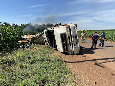 A imprudência de um motorista teria resultado no tombamento de um caminhão Mercedes Benz modelo 1634, na PR-082, próximo à entrada da Fazenda São Francisco, a cerca de 4 km de São João do Ivaí.